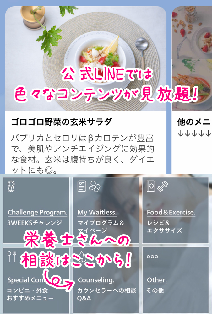 LINEで食事内容や相談内容を送るだけ!